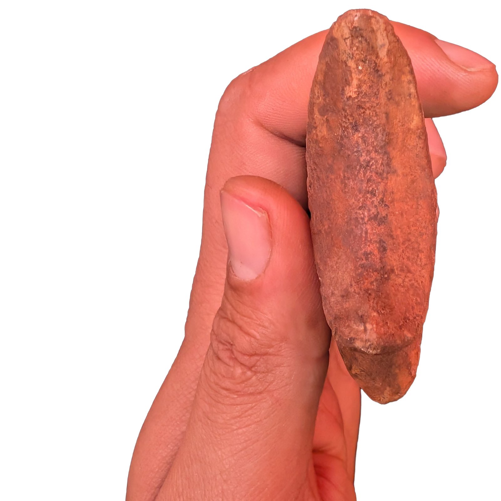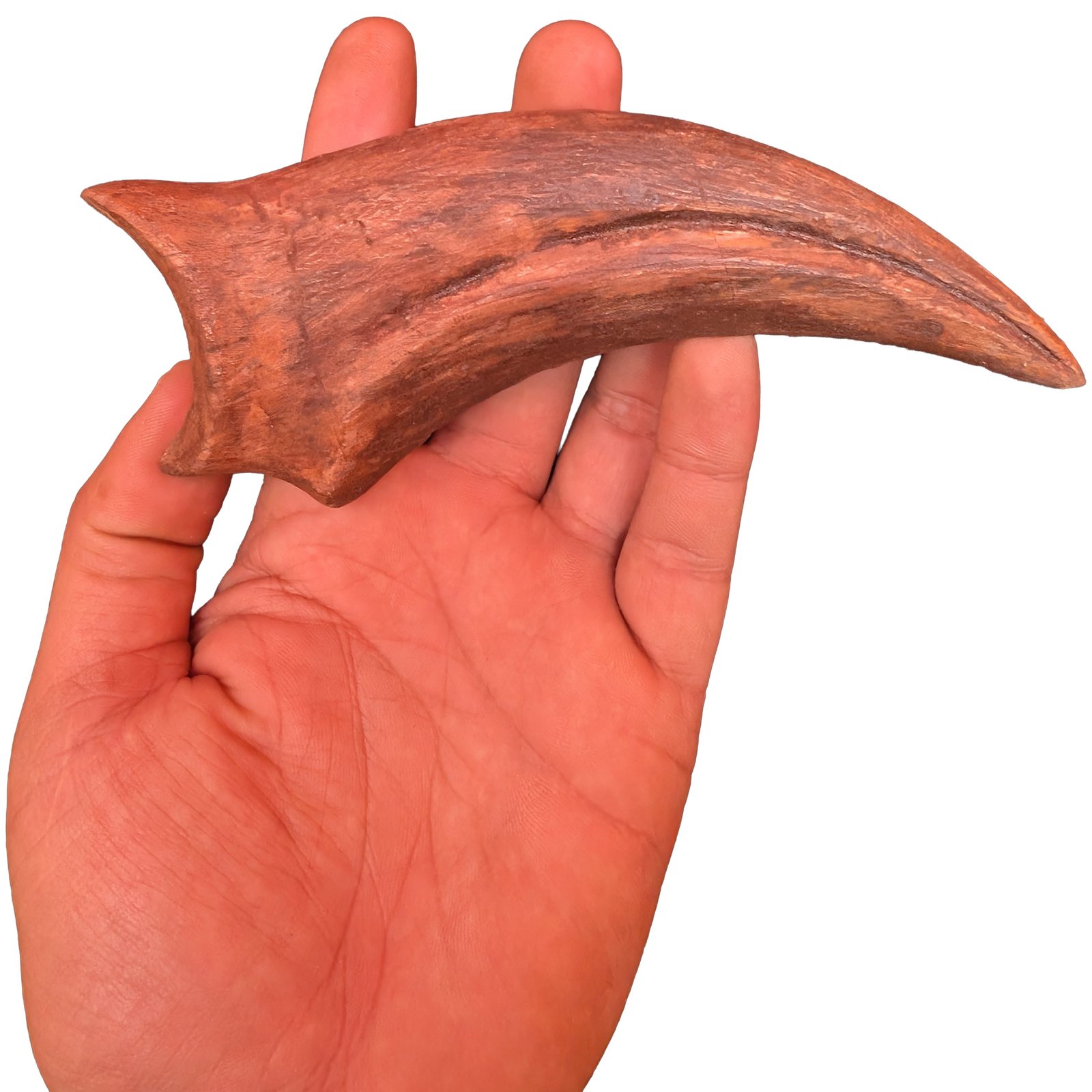 The Claw Authentic Spinosaurus Fossil shows natural curvature and surface detail. The outer layer has been replaced by minerals over millions of years. Creating a hard stone structure. Color ranges from earthy brown to reddish tan. Common for Kem Kem material.
