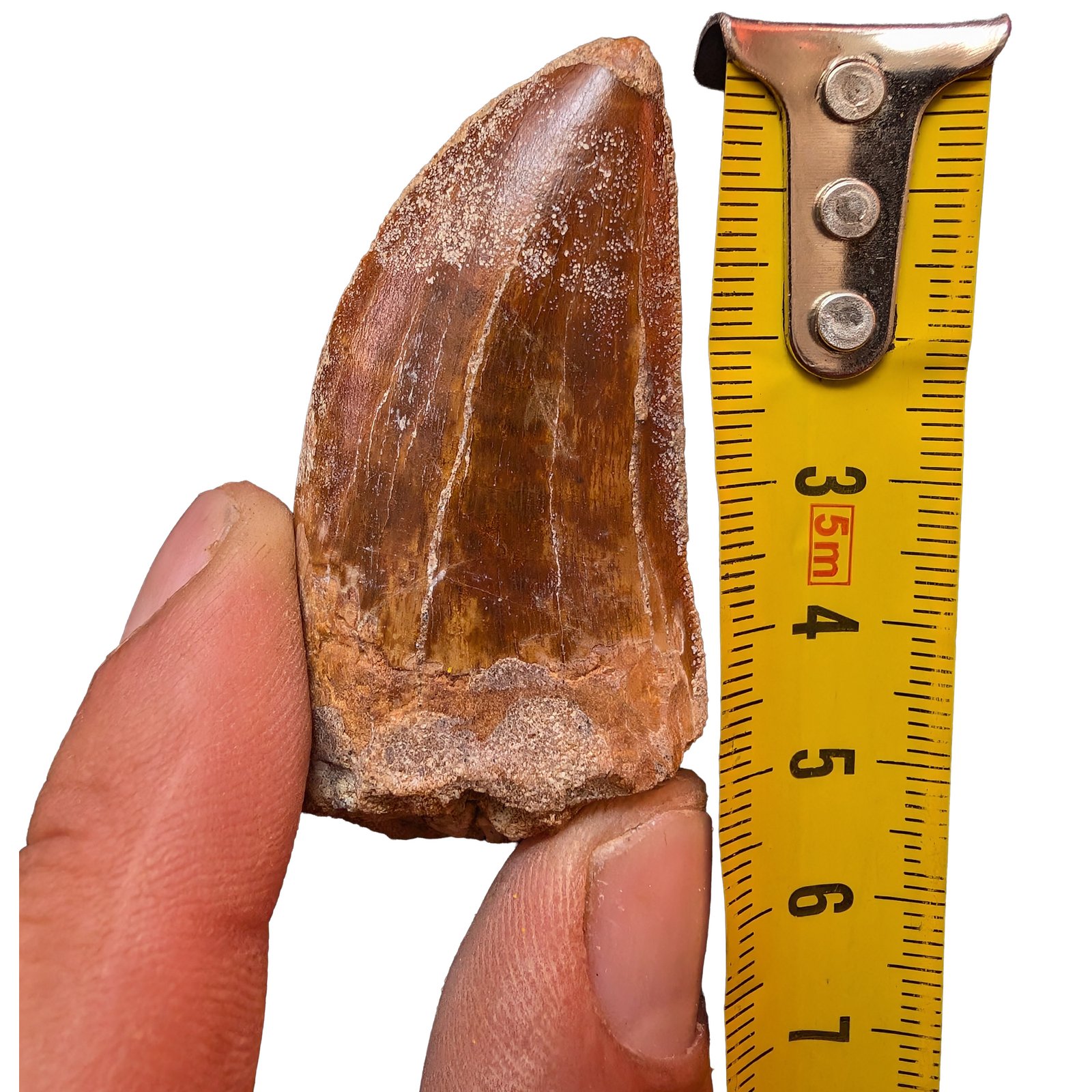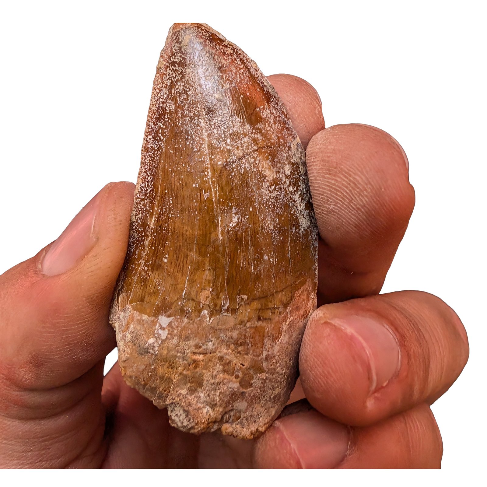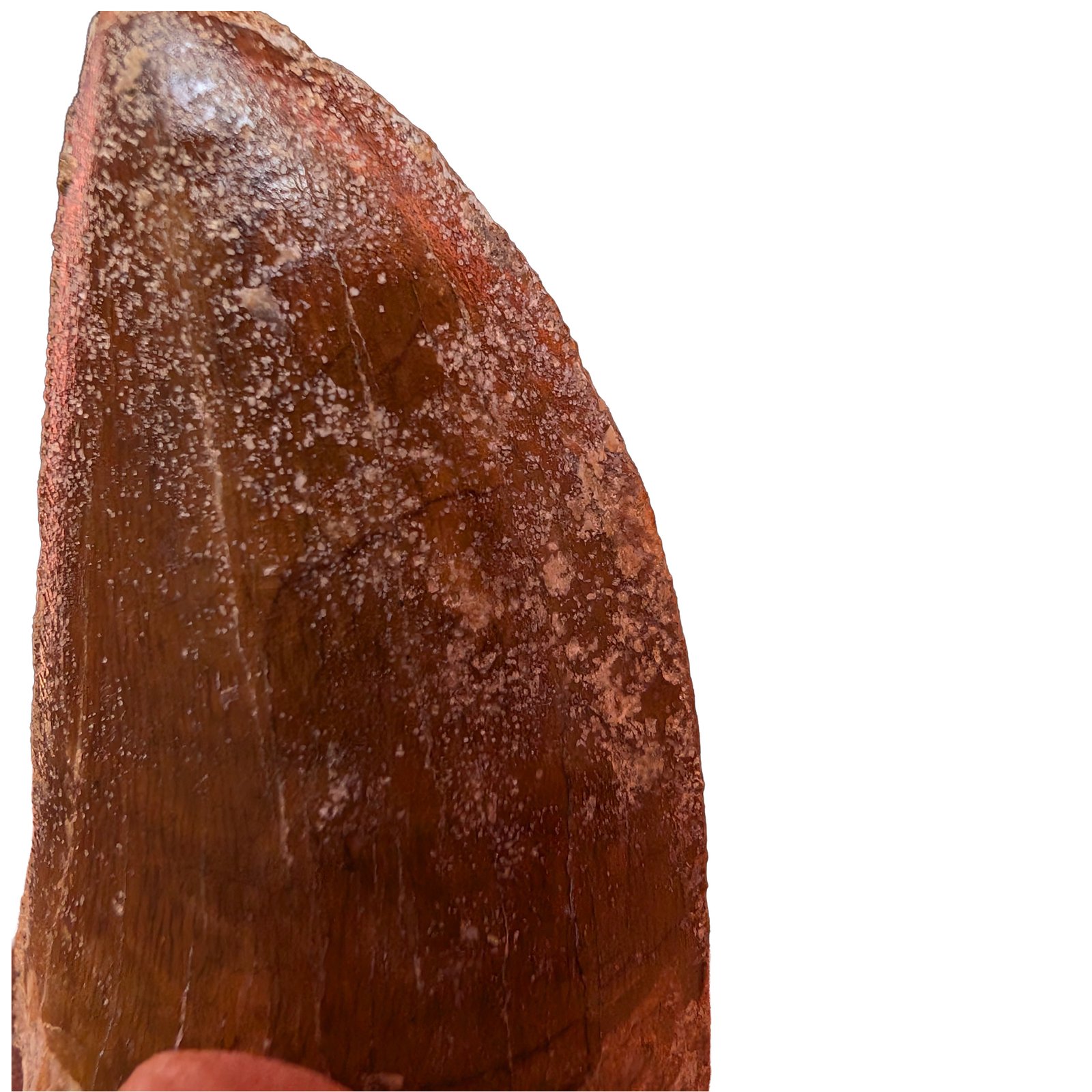 The Genuine Carcharodontosaurus Tooth Find belonged to Carcharodontosaurus saharicus. One of the largest meat eating dinosaurs ever found. It lived during the Cenomanian stage of the Late Cretaceous period.