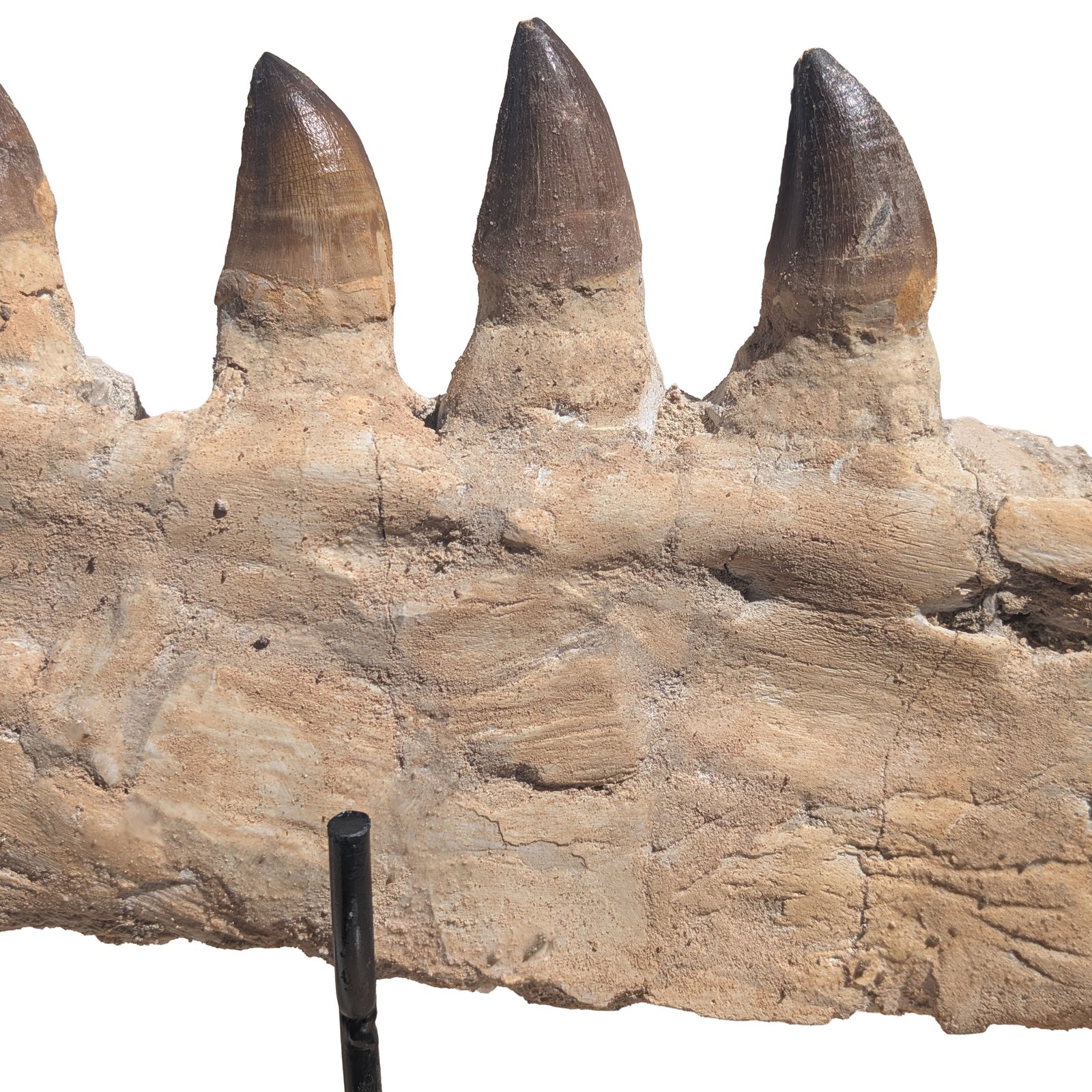 Each fossil jaw comes from real sediment layers found in Morocco. The mineralized bones and preserved tooth sockets reveal a story that goes beyond science. You can see the detail in each ridge and socket. The surface texture holds marks of age, compression, and fossilization. It’s not just a fossil. It’s a record of survival from 70 to 66 million years ago.