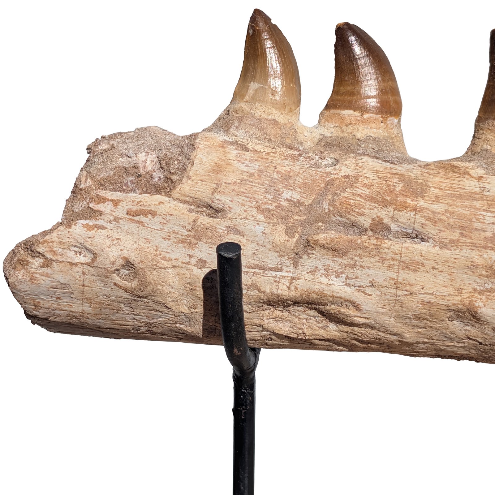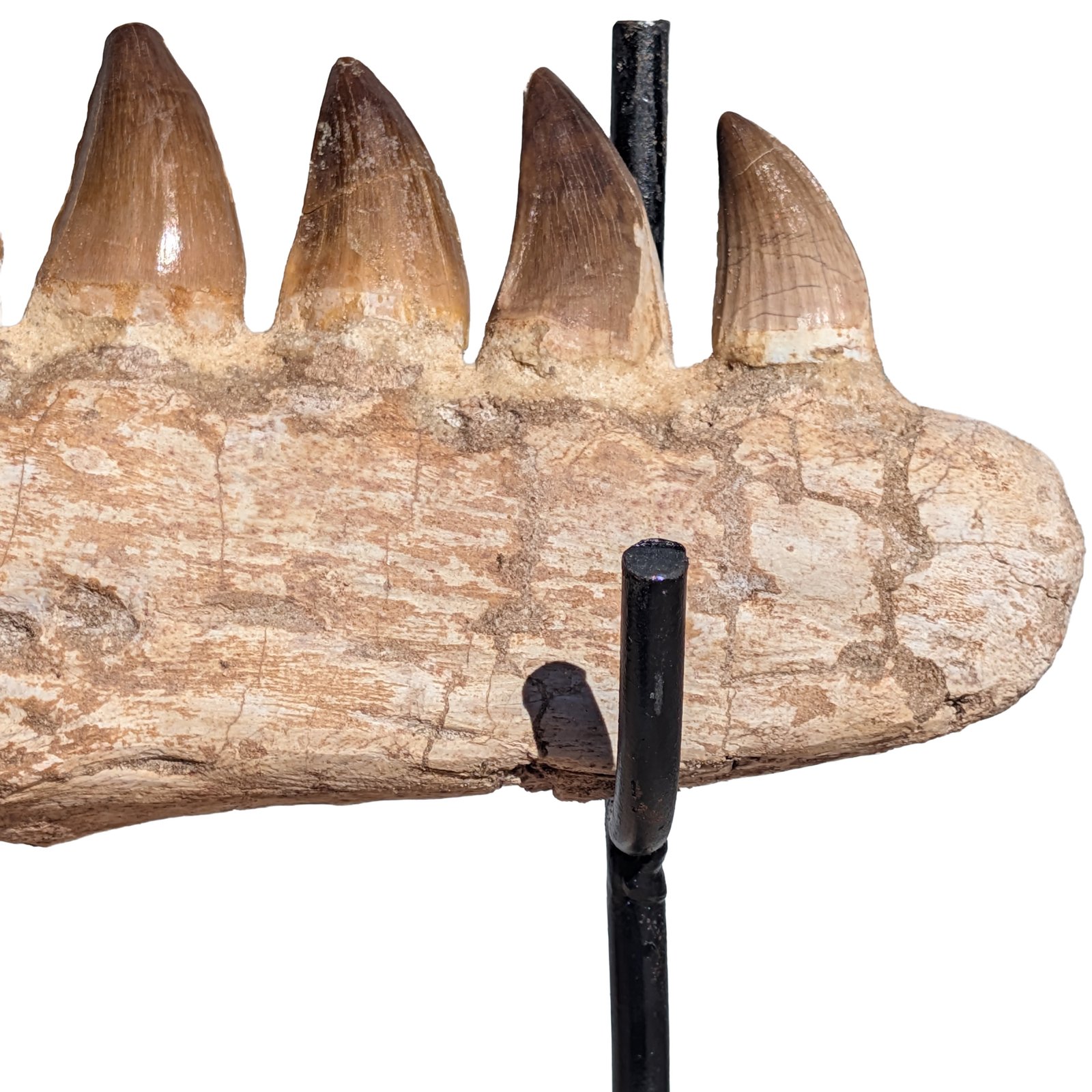 The Mosasaur Study Specimen Morocco shows this feeding system through preserved tooth structure. Study specimens may include single teeth. Partial jaw fragments. Or teeth still attached to matrix rock.
