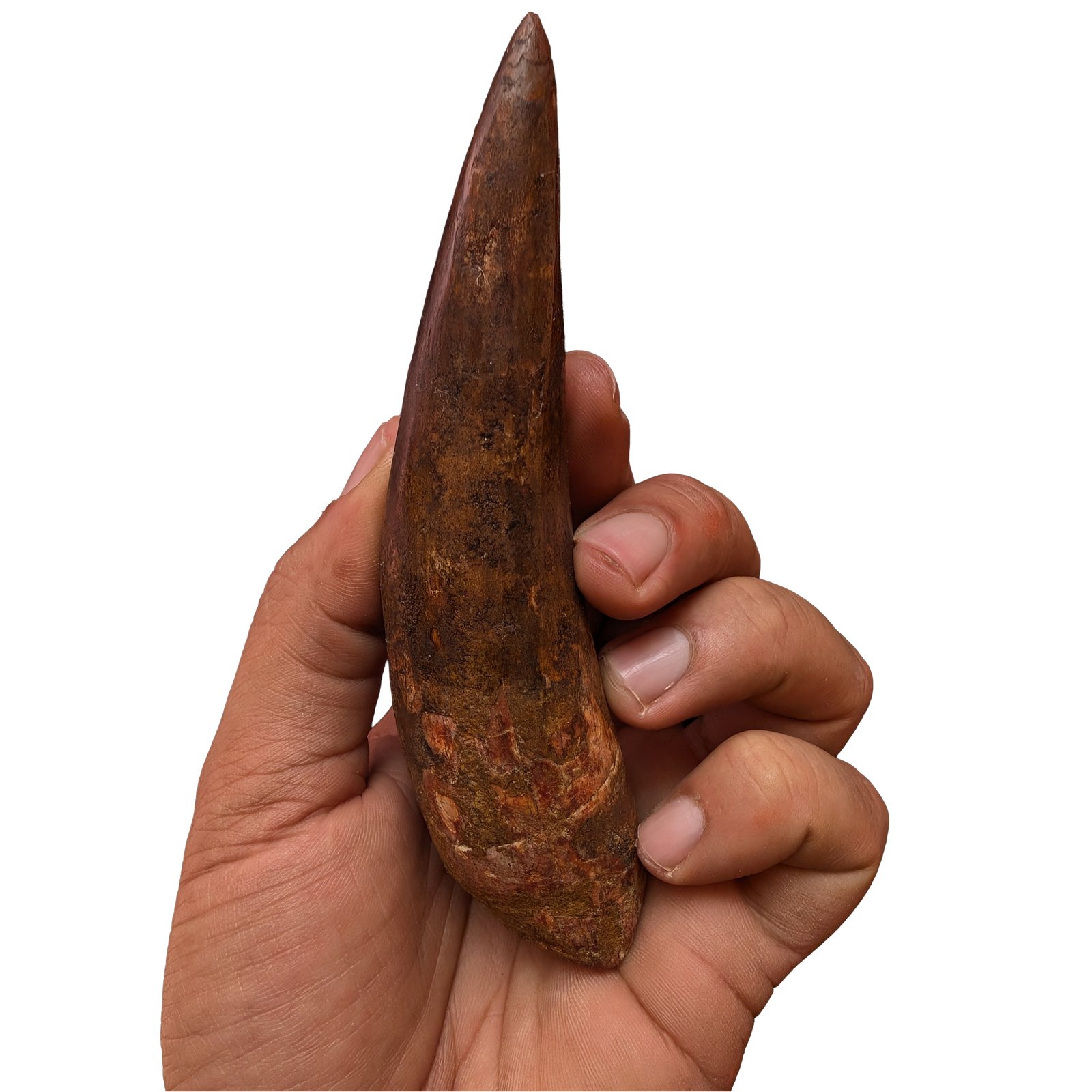 Unlike many dinosaur fossils sold today, this Spinosaurus Tooth Raptor Dinosaur piece is authentic. Not a cast. Not a replica. This is a real fossil, formed naturally over millions of years. It carries unique details like ridges, color variations, and mineral deposits from the site where it was found. Each fossil has its own look. Some show more wear. Some are sharper at the tip. But every one tells a story of deep time.