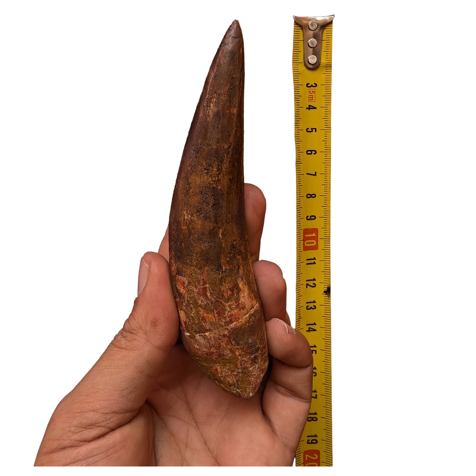 This authentic Spinosaurus Tooth Raptor Dinosaur fossil is a striking piece of prehistoric history. Found in North Africa and preserved with care. A real fossil specimen that brings the power of the dinosaur age right into your hands.